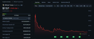 • The memecoin, launched prior to Trump’s second presidential term, peaked at $44 in January.