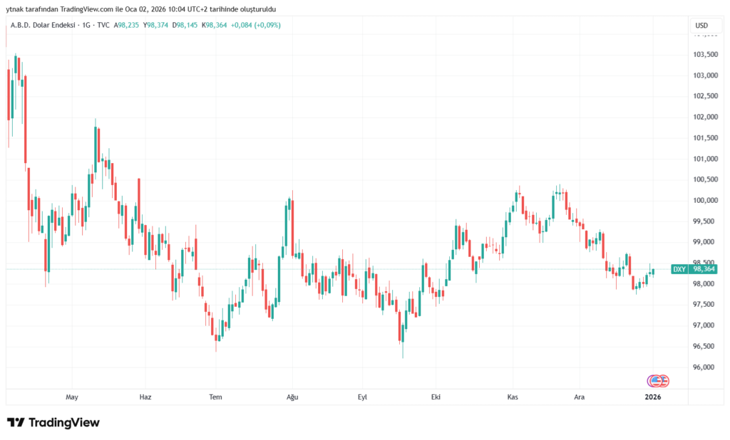 The US currency, measured against six other units by the Dollar Index (DXY), fell by 9.4% in 2025, marking its largest annual decline in eight years, and remained at 98.186. Markets have already priced in expectations that the Fed may start aggressive rate cuts.