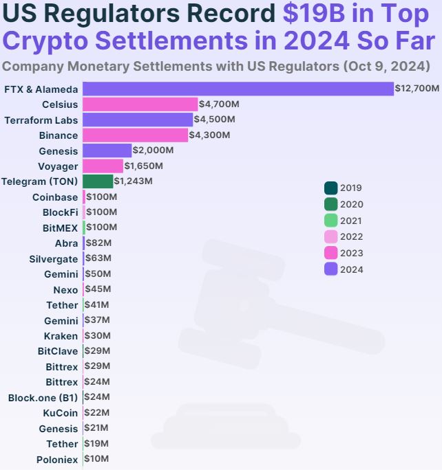 US Regulators to Raise $19 Billion Through Crypto Lawsuit Settlements in 2024