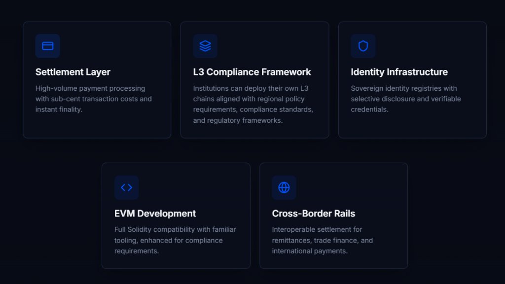 The long-term goal is a network of Ethereum-linked L3 chains for enterprises and governments, enabling cross-border value transfer.