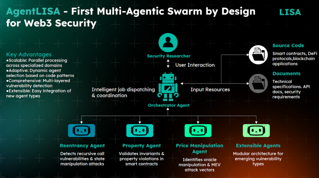 AgentLISA is the world’s first Agentic Security Operating System (ASOS) for Web3 and blockchain ecosystems. Its full name, LLM-based Intelligent Security Analyzer (LISA), uses AI agents to analyze smart contracts, perform in-depth code reviews, and provide security recommendations.