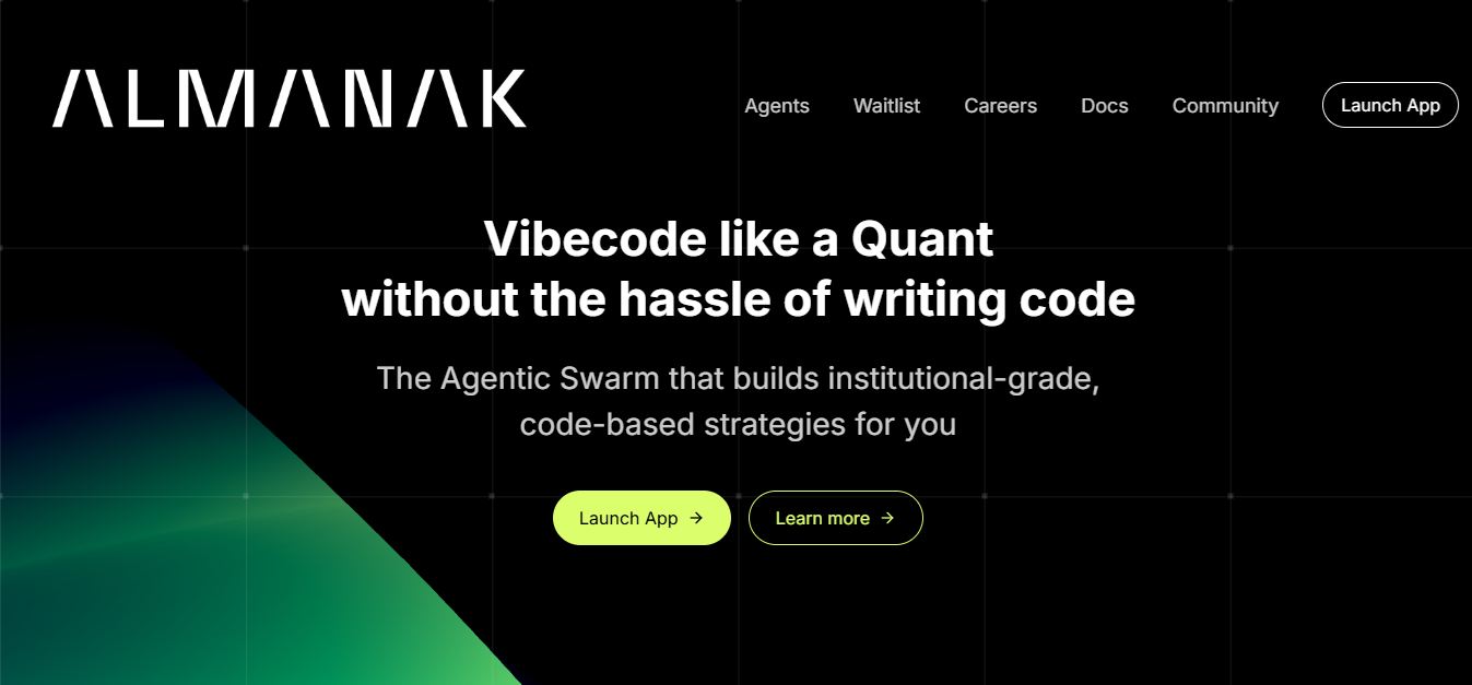 Almanak provides an agent-based infrastructure that allows users to create, test, optimize, and directly deploy automated financial strategies on the blockchain. The platform’s core mission is to make professional-level quantitative (quant) strategies accessible to everyone.