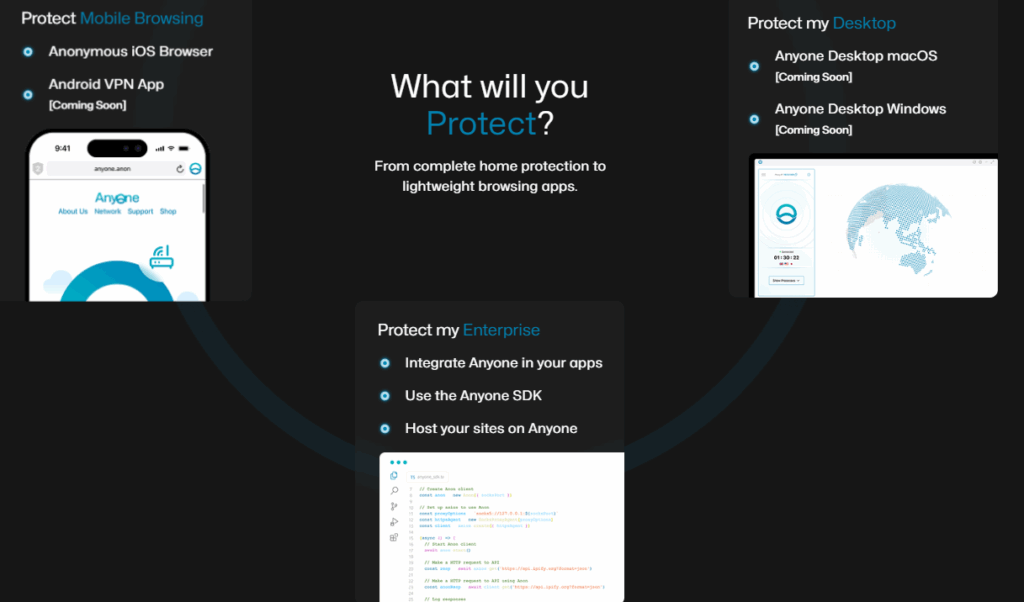 ANyONe Protocol’s main goal is to make internet privacy a standard feature in mainstream applications. Unlike centralized VPNs, it provides a decentralized infrastructure that protects user data without relying on a single company.