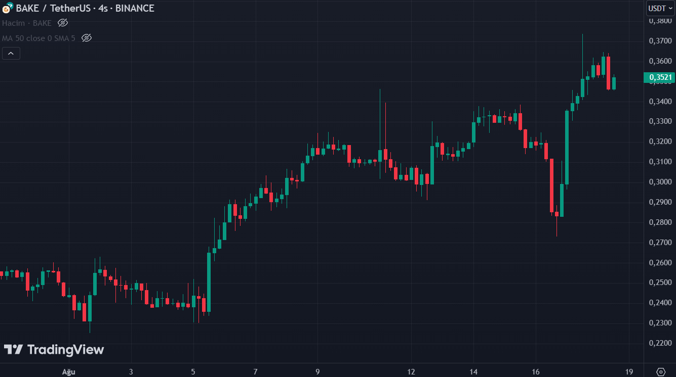 According to TradingView data, BAKE, which spent the day with a decrease of more than 1 percent, is trading at $ 0.35.