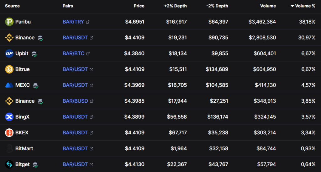 Barcelona Fan Token ($BAR) Price and Market Data