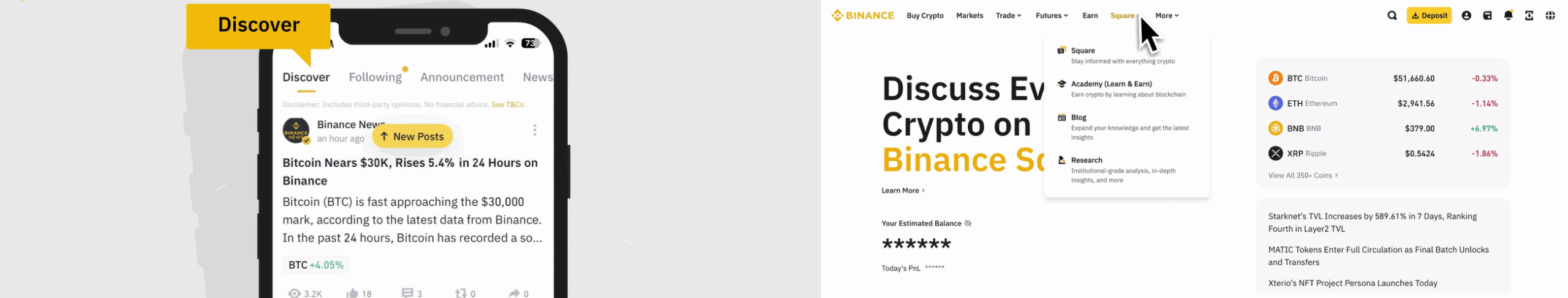 Website: Click on the [Square] tab in the top menu of Binance’s homepage or access it directly via the link.