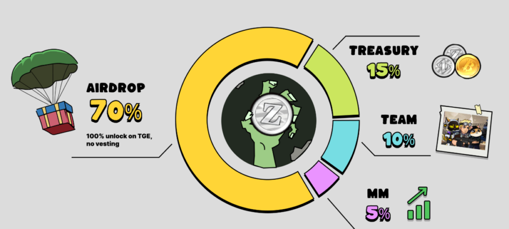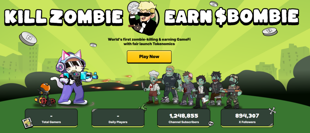 Bombie’s core idea is players earning $BOMB by killing zombies. Tokens can be used for staking, governance, or in-game upgrades. The project features a “Slay & Earn” mechanism with solo missions, airdrop hunts, and weapon collecting.
