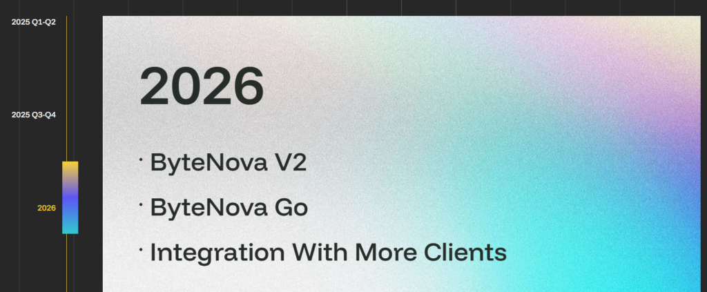 ByteNova benefits from a strong network of investors and partnerships. Key supporters include NVIDIA, CoinMarketCap, and Forum Ventures. NVIDIA provides hardware support to optimize edge AI performance, CoinMarketCap boosts project visibility, and Forum Ventures is a fund specializing in early-stage AI investments.