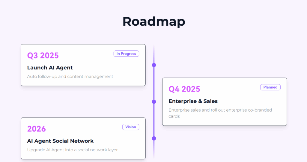 • Q3 2025 (In Progress): AI Agent Launch – automated follow-ups and content management.