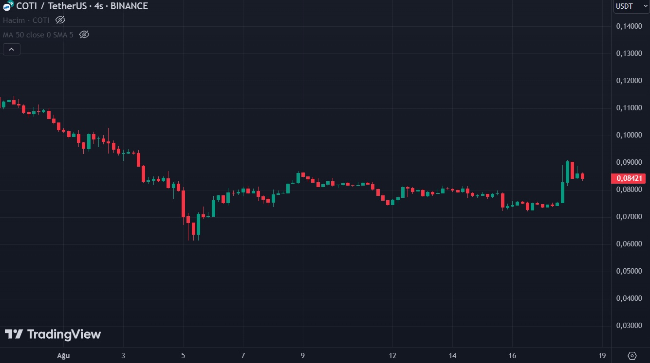 When we look at the COTI chart, we see that it has fallen by nearly 7 percent as of today. According to TradingView data, the cryptocurrency is traded at $ 0.084