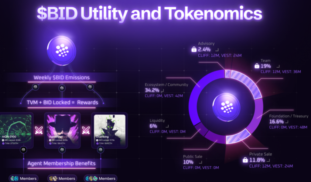 Locking Agent Keys grants access to premium services, exclusive rewards, and BID emissions. The 14-day cooldown required to unlock keys deliberately slows short-term speculation.