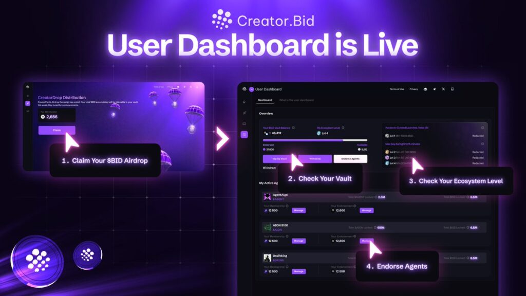 Creator.Bid aims to avoid becoming another short-lived AI-crypto trend. Fair launches, behavior-based incentives, and service-driven revenue set it apart from traditional launchpads.