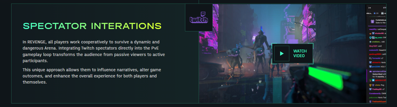 REVENGE offers a structure where Twitch integration is embedded directly into the core of the game. This way, during live streams, viewers do not just watch the game but can also participate in various in-game events.