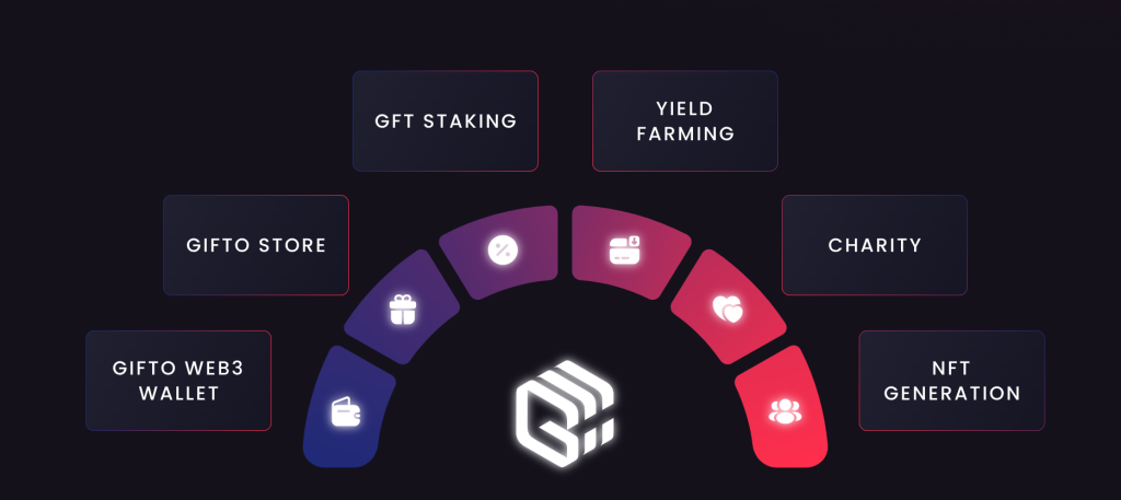 • NFT Management: The Gifto platform allows users to purchase, store, and send NFTs, with features for minting new NFTs and trading through decentralized applications (DApps).
