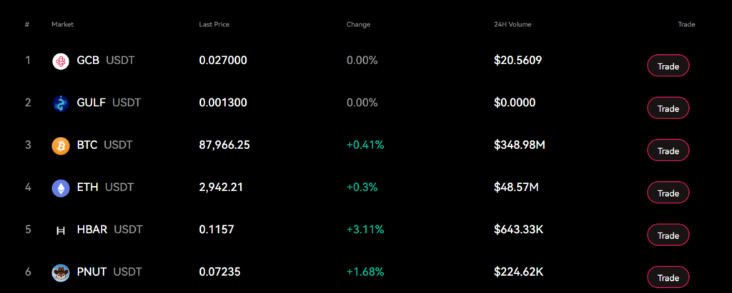Centralized Exchange (CEX): Users can trade over 500 cryptocurrencies