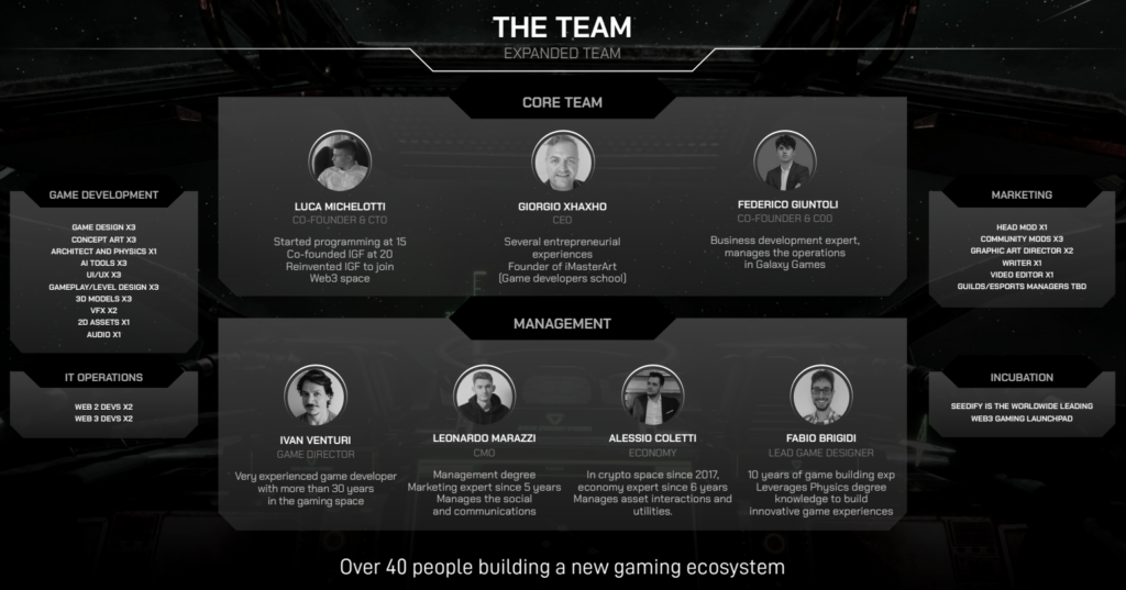 - Luca Michelotti (Co-Founder & CTO) began programming at age 15 and led the technical Web3 integration of the project.