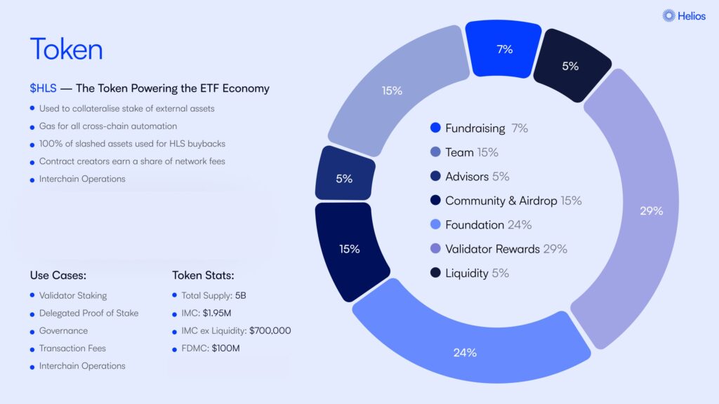 Helios is an EVM-compatible Layer-1 blockchain with a Proof-of-Stake (PoS) consensus mechanism, enabling developers to build decentralized, programmable, and automated portfolio products.