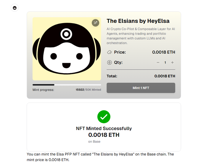 • Elsa PEP NFT Collection: 20,000 items on Base chain, early-user perks