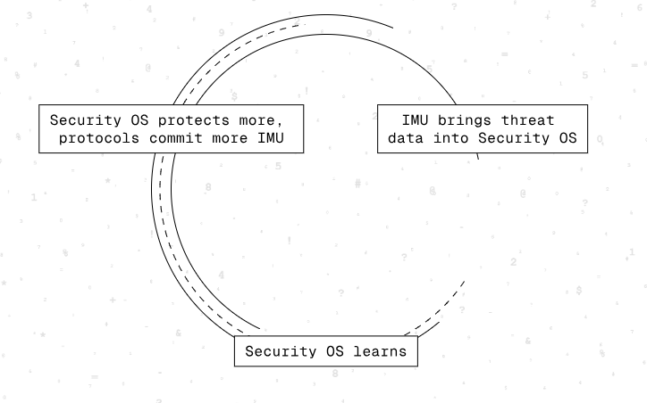 IMU directly addresses incentive misalignment in security. Researchers, protocols, and contributors operate along a shared incentive path, feeding high-quality threat data into the Security OS.