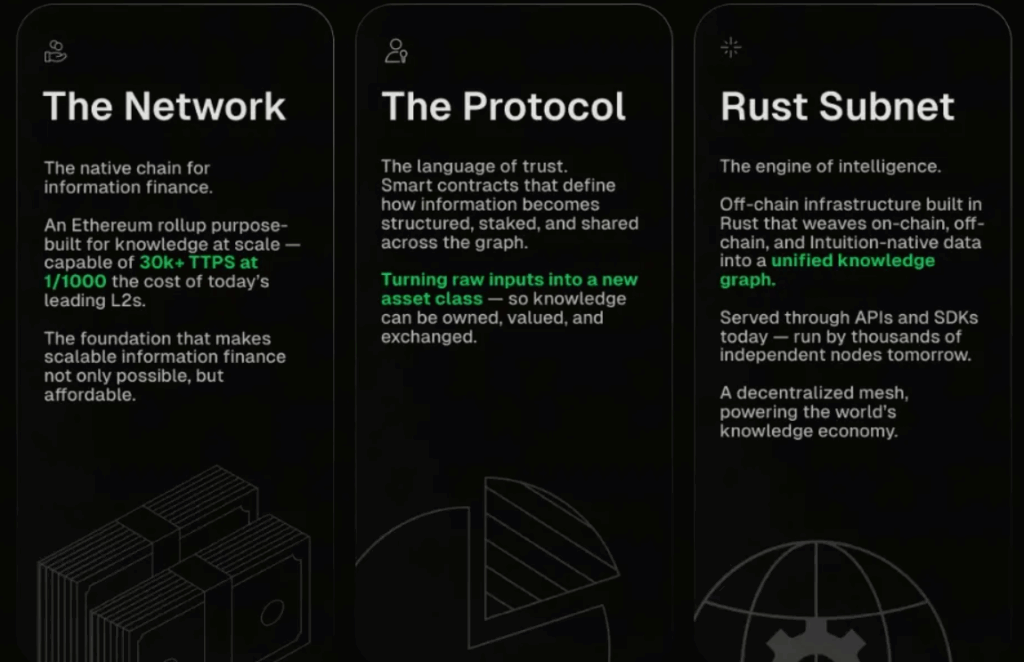 Intuition is a Web3 protocol that converts abstract concepts such as knowledge, reputation, and verified data into digital assets with economic value. The project introduces a new field called Information Finance (InfoFi), enabling the creation, verification, ownership, and exchange of knowledge. The TRUST token serves as the native currency of this knowledge economy.