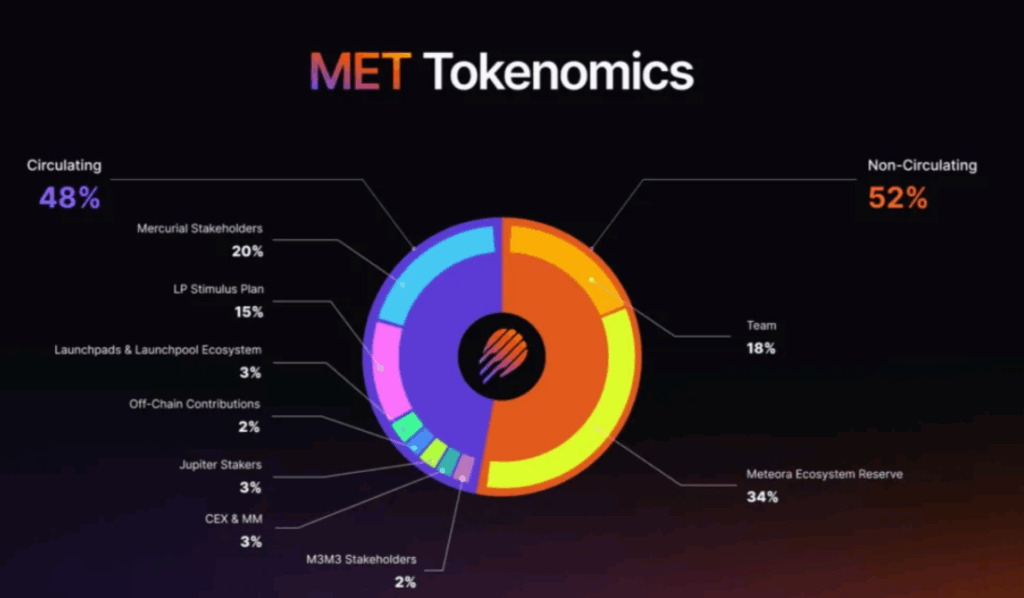 The M3M3 Plan, also known as Phoenix Rising, symbolizes the transition from Mercurial Finance to Meteora. MRV token holders were able to migrate to MET, ensuring the community is integrated into the new liquidity infrastructure.