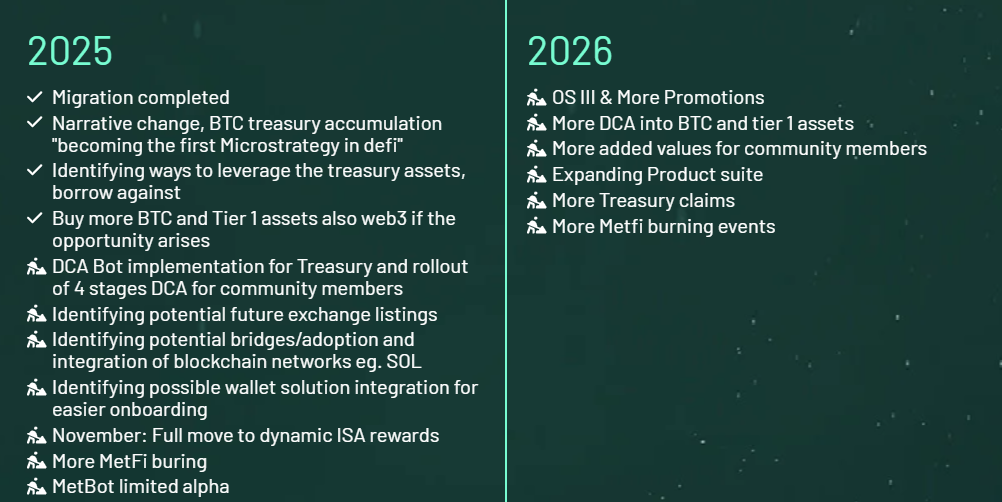 MetFi democratizes access to blue-chip crypto assets via a decentralized treasury system. Beyond accumulation, it provides early-stage blockchain investment opportunities to the community.
