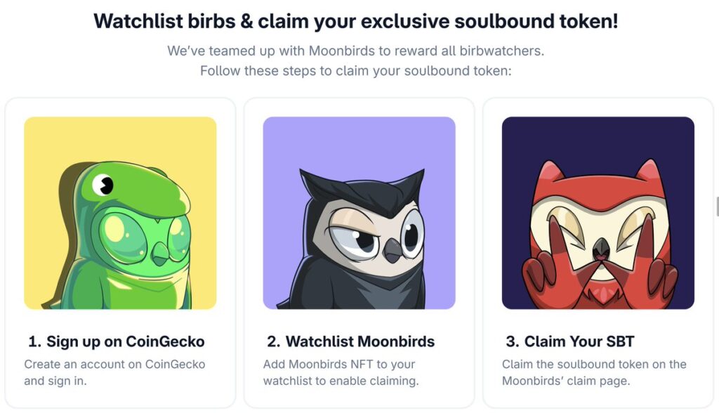 Moonbirds features the “Nesting” system: NFT holders who keep their assets in-wallet see their owl’s status increase, unlocking rewards, airdrops, and physical product access. The BIRB token powers this mechanism, handling rewards and ecosystem trading.