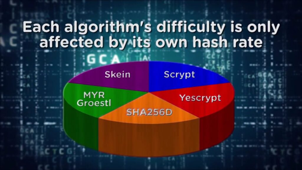 Myriadcoin supports mining across multiple hardware types through five distinct algorithms.