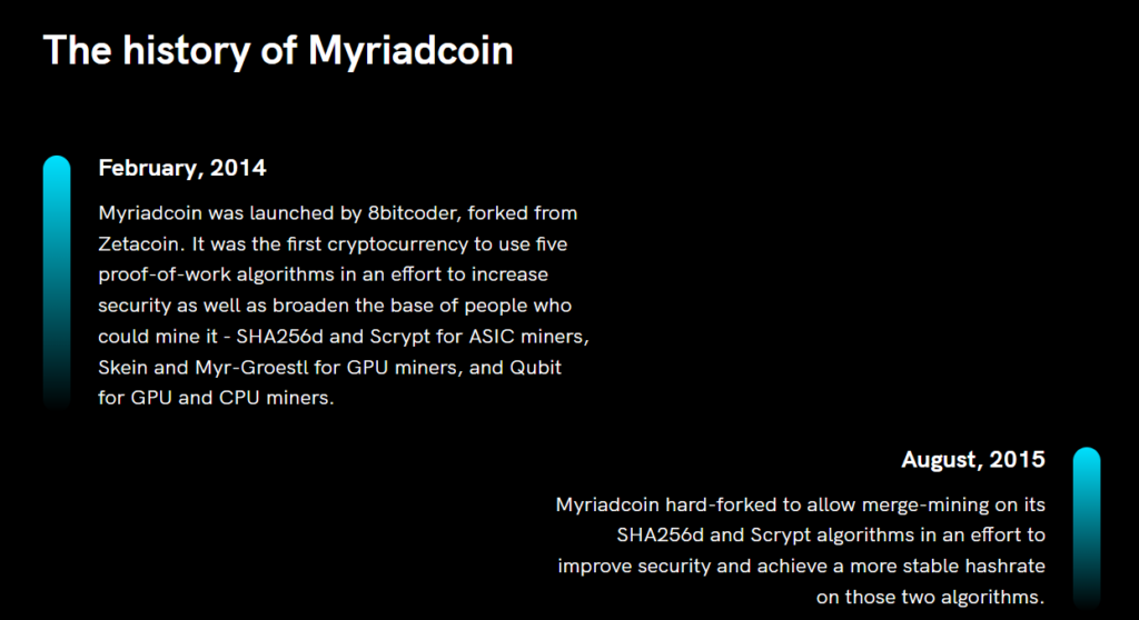 Myriad (XMY) is a cryptocurrency launched in 2014 with a strong focus on decentralization and fair mining. The project enhances network security and miner diversity by supporting five different mining algorithms. Unlike many modern crypto projects, Myriadcoin launched without an ICO or premine and remains fully community-driven.