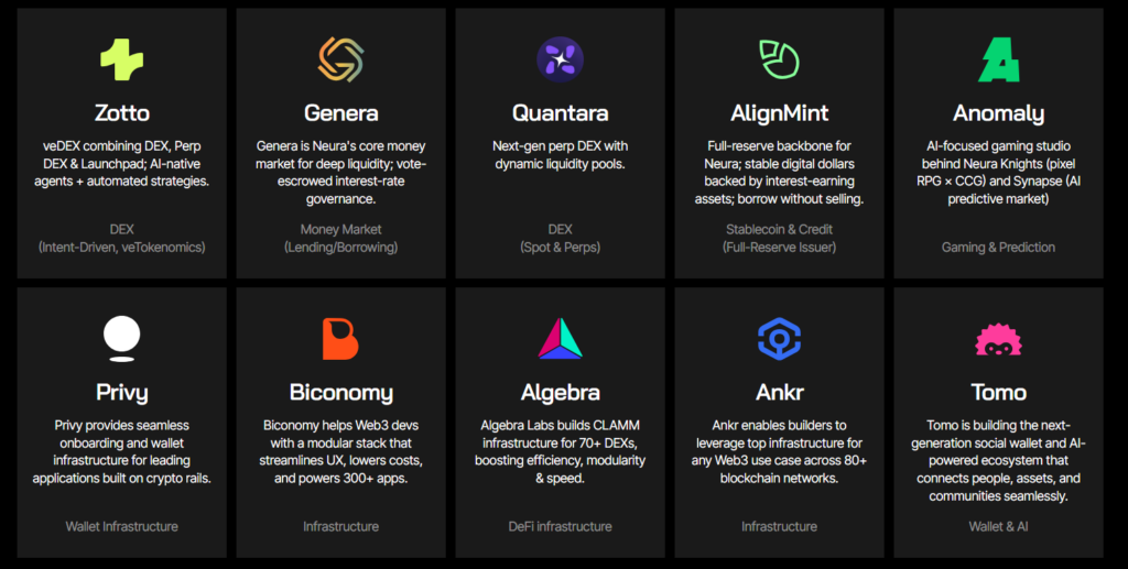 Applications: Zotto, veDEX, Genera, Quantara, AlignMint, Anomaly, Privy, Biconomy, Algebra, Ankr, Tomo