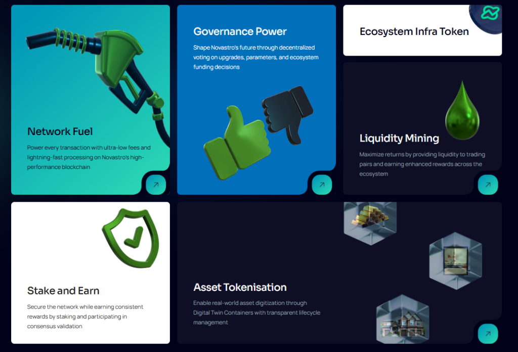 Novastro allows SPV-based tokenized assets on Ethereum to be traded and settled at high speed on Arbitrum, Sui, and Solana. AI optimization automates asset strategies, stablecoin integration improves on-chain efficiency, and automated compliance (KYC/AML) ensures secure, scalable operations. Users can tokenize assets in minutes and trade within seconds. zk-rollup support and multi-chain settlement enhance scalability.