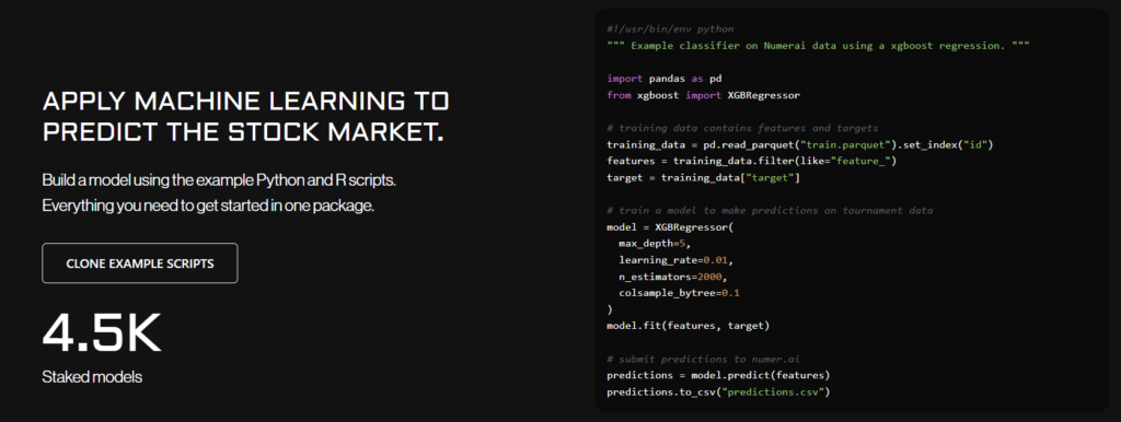 Numerai provides anonymized financial data to a global network of data scientists. Participants build models and stake NMR tokens. Successful models are rewarded, while failed stakes are burned, incentivizing high-quality predictions and strengthening hedge fund investment decisions.