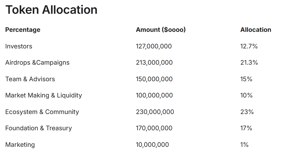 Although specific investor names have not been officially disclosed, 12.7% of the total token supply has been allocated to investors, with vesting mechanisms in place to ensure long-term commitment. This allocation structure suggests early-stage support from venture capital firms and private investors.