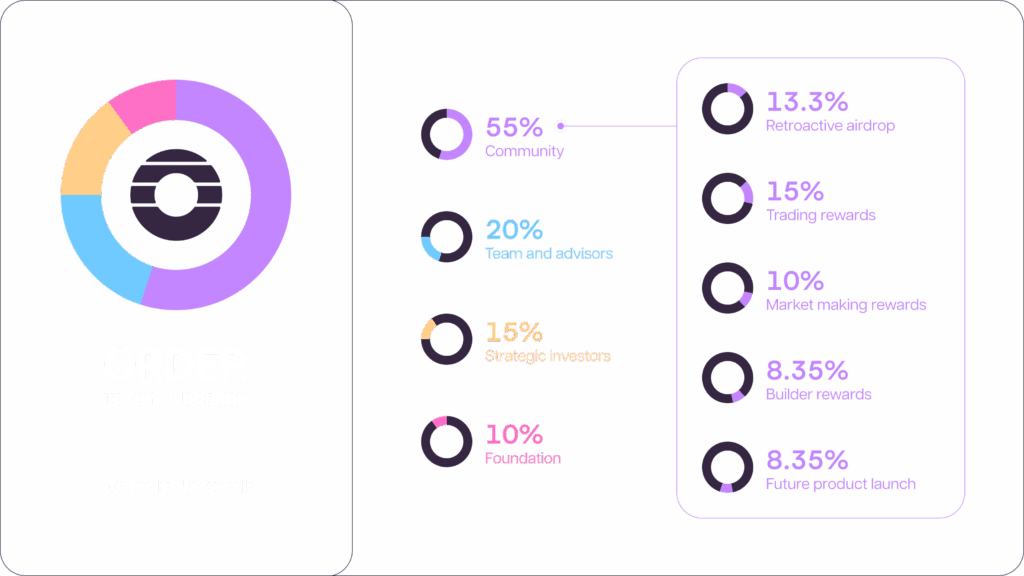 $ORDER is the native token of the Orderly ecosystem. It’s designed to support decentralization, growth, user engagement, and economic stability.