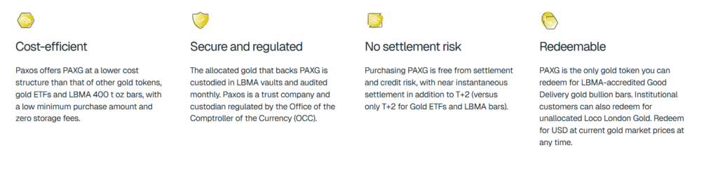 On the sell side, PAXG can be exchanged for stablecoins, fiat currency, or other crypto assets. Investors who reach certain thresholds also have the option to redeem PAXG for physical gold.