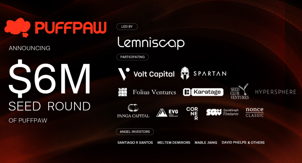 Puffpaw has built a strong support network on the funding side. In September 2024, it raised $6 million in a seed round, followed by $4.1 million from node sales, bringing total funding to $10.1 million.