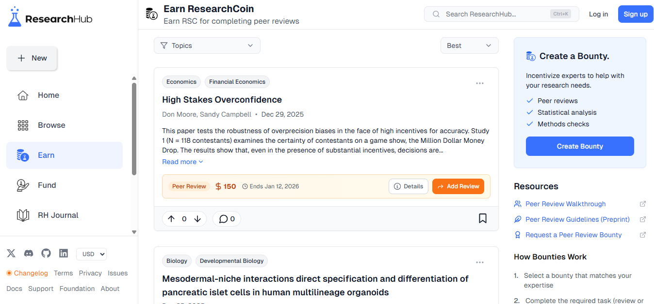 RSC holders can vote on decisions affecting the platform’s development. This turns ResearchHub into a community-governed ecosystem rather than a centralized structure.