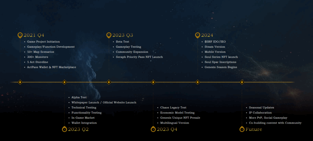 • 2024: SERAPH IDO/IEO, Steam & mobile release, Soul Series NFT launch, Genesis Season start.