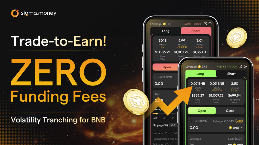 Sigma.Money is an innovative DeFi protocol that separates yield into two risk classes. The system divides BNB-based assets into Volatile Tranche (xBNB, sBNB) and Stable Tranche (bnbUSD).