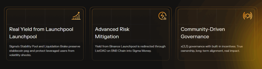 Sigma is fully BNB Chain compatible and interacts with ListaDAO, BNB Liquid Staking, and other DeFi protocols. bnbUSD may expand to multi-chain use in the future.