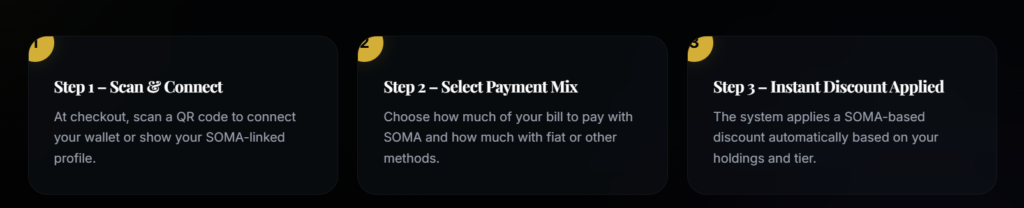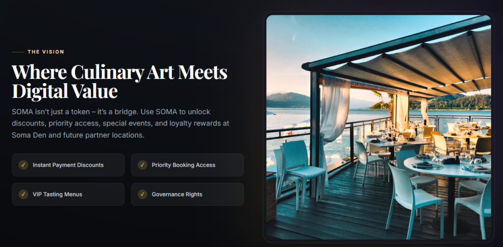 The primary goal of SOMA is to reward restaurant customers not only with discounts, but also with exclusive privileges, digital memberships, and long-term loyalty benefits. The project is designed so that even users with no crypto experience can use the token in their daily lives.