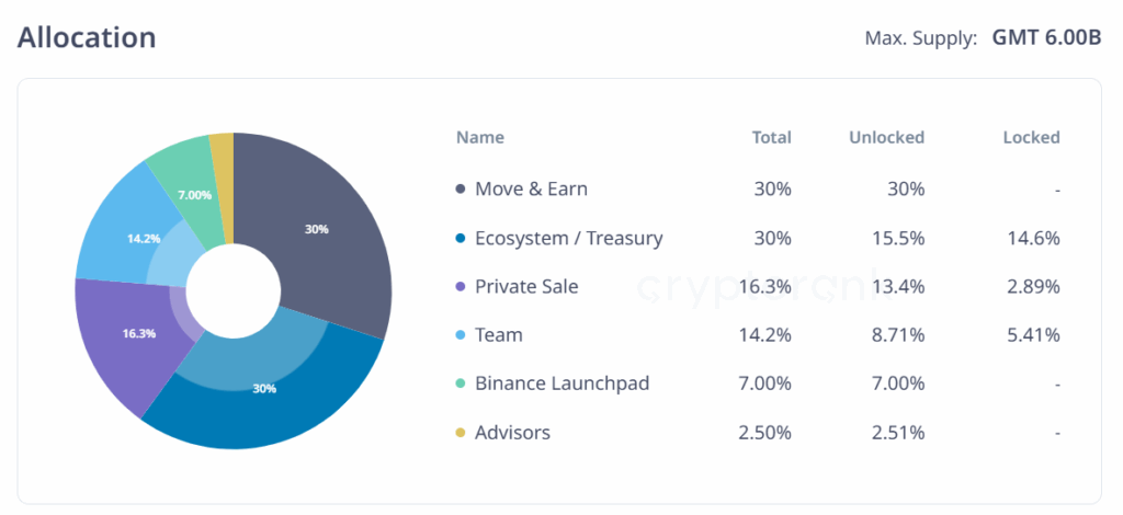GMT (Green Metaverse Token) – 6 billion supply, governance token.