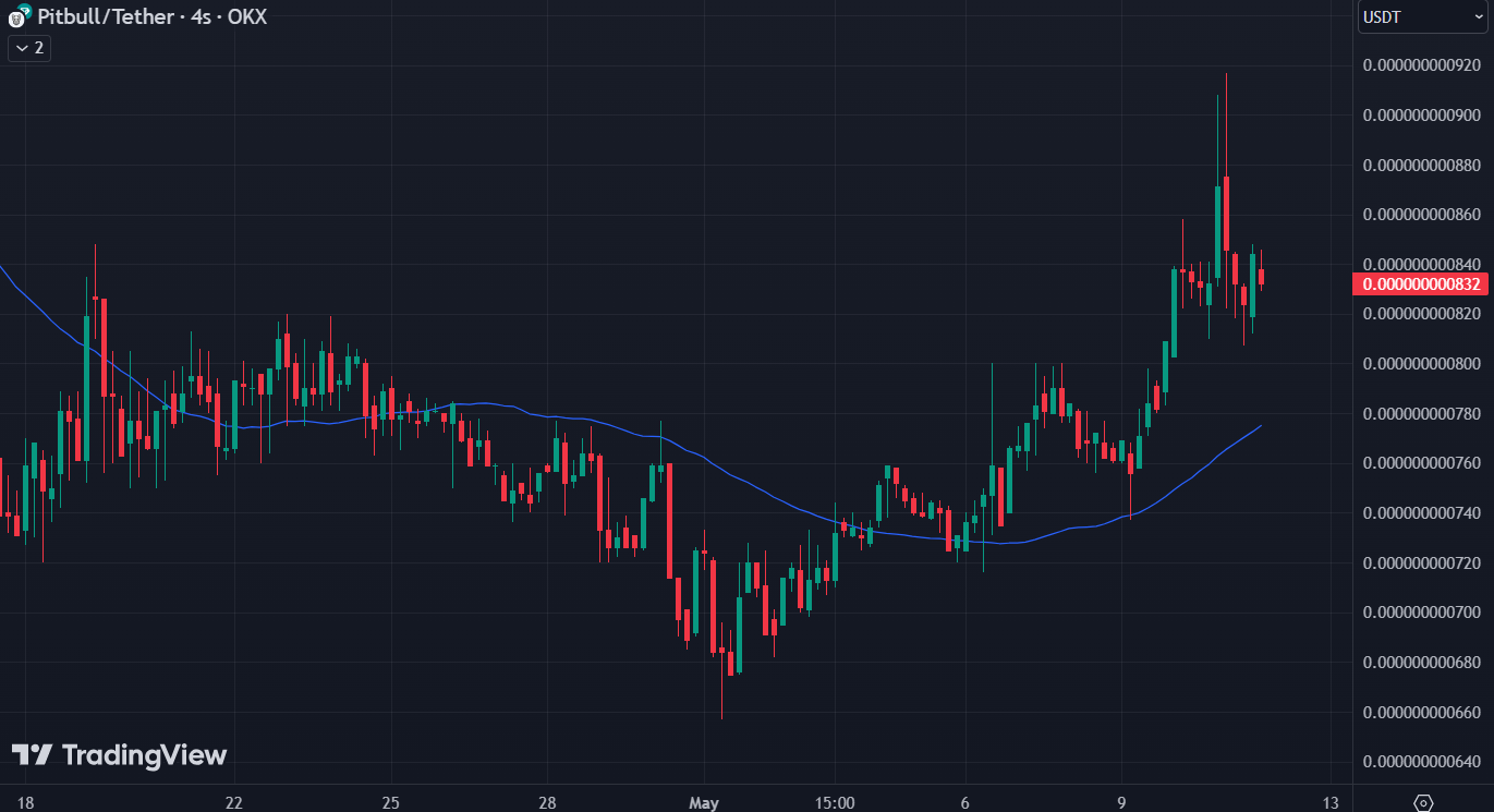 According to TradingView data, Pitbull Coin, which spent the day with a 3 percent decrease, is currently hovering at $0.000000000845.