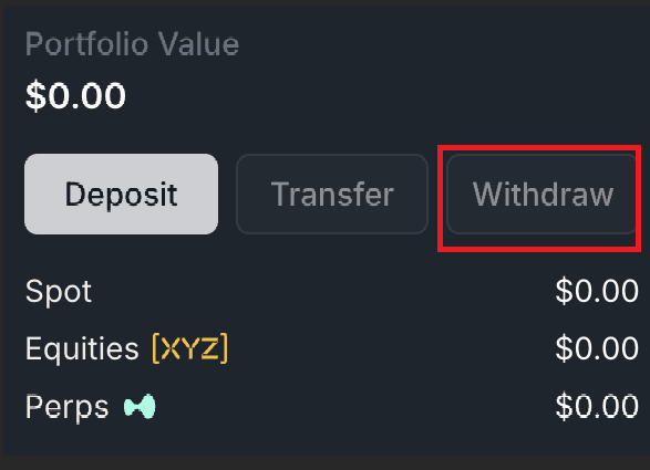 tradeXYZ allows users to deposit spot crypto assets via the Unit Protocol infrastructure. Deposits are made through the native blockchain of the relevant asset.
