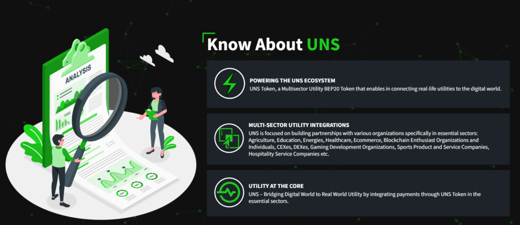 UNS aims to function as a digital payment, investment, and value transfer tool across multiple sectors, including agriculture, education, healthcare, energy, real estate, and e-commerce. The project’s long-term vision is to bridge the digital economy with essential real-life industries through blockchain-based infrastructure.