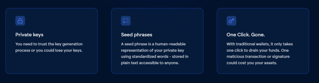 • No Seed Phrase: Traditional 12/24 word seed phrase removed