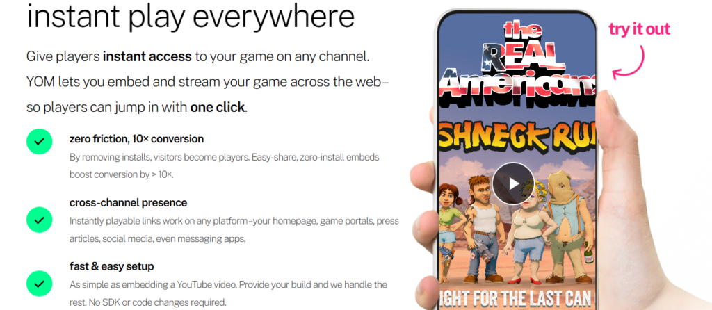 This model is revolutionary for both players and studios. Traditional cloud gaming costs $1–2/hour; YOM reduces this to below $0.05. Audience reach expands, sales accelerate, and publishers retain 100% revenue control (removing the 30% store fee).