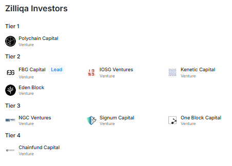 Zilliqa has received support from both crypto-focused and traditional venture capital funds across different investment rounds. These investors reflect confidence in the project’s institutional vision and technical infrastructure.