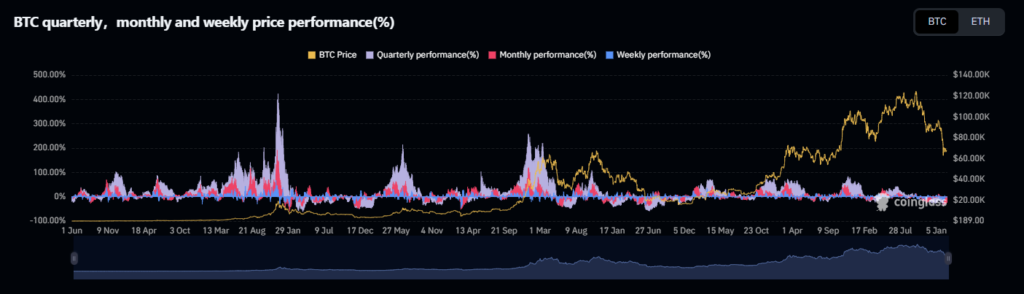 Despite the statistical optimism, BTC continues to trade roughly 25% below its level at the beginning of the year. That decline has weighed heavily on sentiment. Confidence eroded gradually, not all at once. And gradual declines tend to leave deeper psychological marks.