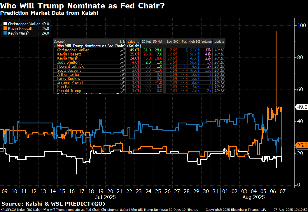 Kalshi predicts Waller is the frontrunner to be the next Fed chair.